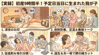 初産で予定日当日に生まれた、9時間半の出産レポです。お印から始まり、陣痛促進剤や吸引分娩に至った壮絶な体験をリアルに綴りました。夫の号泣や臍の緒カット、産後の縫合まで包み隠さず公開。これから出産を控える方の参考になれば嬉しいです。